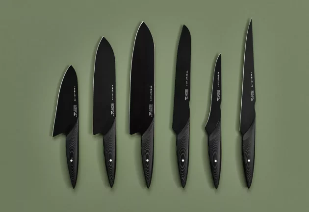 I coltelli da cuoco Santoku e i coltelli da cuoco Fly Wheel Cut della serie di coltelli Darkline di Tyrolit Life funzionano altrettanto bene. Scegli il tuo coltello in base al peso e alla lunghezza della lama nel nostro negozio online di coltelli.