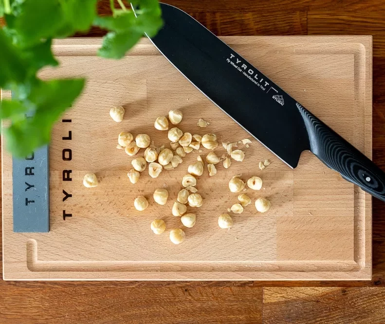 Per evitare che la lama perda la sua affilatura durante il taglio, si consiglia di utilizzare come base taglieri in legno o in plastica. Entrambi i materiali cedono leggermente e proteggono così la lama del coltello.