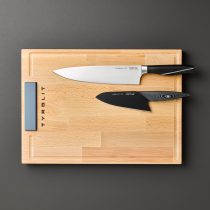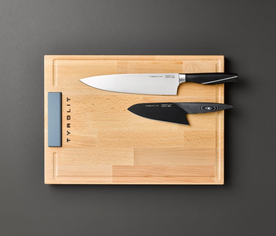Seguendo il principio della semplificazione, Tyrolit Life ha combinato due aspetti essenziali in un unico strumento – il tagliere ideale e un aiuto affidabile per riaffilare i coltelli da cucina, come ad esempio il Santoku, direttamente durante il taglio. Questo prodotto è disponibile in due dimensioni.